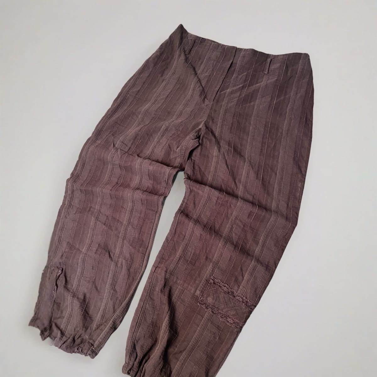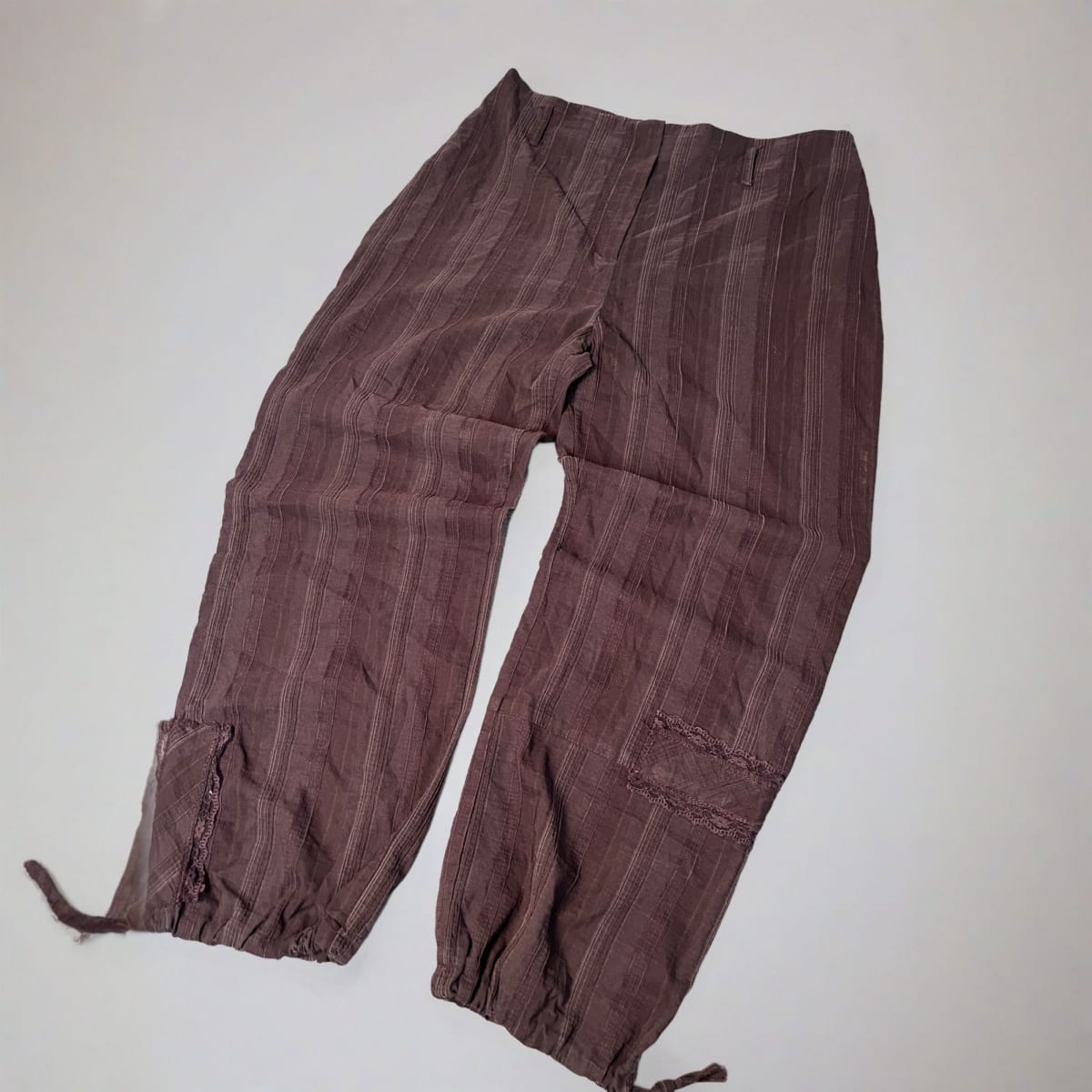 Vintage Y2K Renatto Bene Relaxed Fit Drawstring Trousers With Tonal Stripe Brown - Size Uk 12