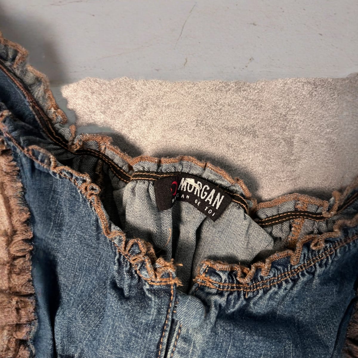 Vintage Y2K Morgan De Toi 2000S Denim Corset Blouse With Puff Sleeves And Lace-Up Back Blue - Size Missing